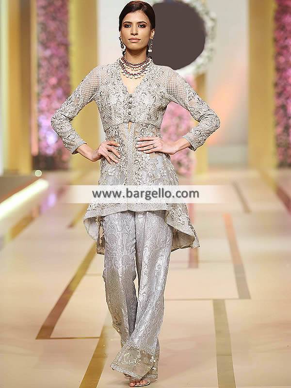 Alluring High-Low Hem Dress for Evening and Party Evening Suits Evening Dresses High-Low Hem Dresses Williston Park New York NY USA 1 review(s) Add your review Availability: In stock SKU: D6456 Delivery date: 3 - 4 Weeks Size * Size Chart | Custom Measurements Please select Select a Size Extra Small (XS) Small (S) Small 2 (S-2) Medium (M) Medium 2 (M-2) Large (L) [+$30.00] Large 2 (L-2) [+$30.00] Extra Large (XL) [+$30.00] Extra Large 2 (XL-2) [+$30.00] 2XL [+$30.00] 2XL-2 [+$30.00] Custom (Made to Measure) Sleeves * View Sleeve Designs Please select Select Sleeves As shown/described Angel Sleeves Bell Sleeves Bishop Sleeves Butterfly Sleeves [+$15.00] Cap Sleeves Churidar Sleeves Elbow Sleeves Flutter Sleeves Full Sleeves Half Sleeves Laces Sleeves Lantern Sleeves Maggan Sleeves Poet Sleeves Pointed Sleeves Puff Sleeves Raglan Sleeve Roll-up Sleeves Sleeveless Super Mini Tailored Sleeves Three Quarter Trumpet Sleeves Bottom * Please select Select Bottom As shown/described Palazzo Churidar Pajama Slim Pajama Baggy Shalwar Patiala Shalwar [+$30.00] Regular Shalwar Slim Shalwar Slim Trousers Bell Bottom Trousers Cropped Trousers Capri Pants Flappers Trousers Flared Trousers Straight Trousers Select your height * Please select Select your height 4 feet 5 in (135 cm) 4 feet 6 in (137 cm) 4 feet 7 in (139 cm) 4 feet 8 in (142 cm) 4 feet 9 in (144 cm) 4 feet 10 in (147 cm) 4 feet 11 in (149 cm) 5 feet (152 cm) 5 feet 1 in (154 cm) 5 feet 2 in (157 cm) 5 feet 3 in (160 cm) 5 feet 4 in (162.5 cm) 5 feet 5 in (165 cm) 5 feet 6 in (168 cm) 5 feet 7 in (170 cm) 5 feet 8 in (173 cm) 5 feet 9 in (175 cm) 5 feet 10 in (178 cm) 5 feet 11 in (180 cm) 6 feet (183 cm) 6 feet 1 in (185 cm) 6 feet 2 in (188 cm) 6 feet 3 in (190.5 cm) 6 feet 4 in (193 cm) 6 feet 5 in (195 cm) 6 feet 6 in (198 cm) 6 feet 7 in (200 cm) 6 feet 8 in (203 cm) 6 feet 9 in (206 cm) 6 feet 10 in (208 cm) 6 feet 11 in (211 cm) 7 feet (213 cm) $699.95 Qty: Add to cart Ship to Select country United States Afghanistan Albania Algeria American Samoa Andorra Angola Anguilla Antarctica Antigua and Barbuda Argentina Armenia Aruba Australia Austria Azerbaijan Bahamas Bahrain Bangladesh Barbados Belarus Belgium Belize Benin Bermuda Bhutan Bolivia Bosnia and Herzegowina Botswana Bouvet Island Brazil British Indian Ocean Territory Brunei Darussalam Bulgaria Burkina Faso Burundi Cambodia Cameroon Canada Cape Verde Cayman Islands Central African Republic Chad Chile China Christmas Island Cocos (Keeling) Islands Colombia Comoros Congo Congo (Democratic Republic of the) Cook Islands Costa Rica Cote D'Ivoire Croatia Cuba Cyprus Czech Republic Denmark Djibouti Dominica Dominican Republic East Timor Ecuador Egypt El Salvador Equatorial Guinea Eritrea Estonia Eswatini Ethiopia Falkland Islands (Malvinas) Faroe Islands Fiji Finland France French Guiana French Polynesia French Southern Territories Gabon Gambia Georgia Germany Ghana Gibraltar Greece Greenland Grenada Guadeloupe Guam Guatemala Guinea Guinea-bissau Guyana Haiti Heard and Mc Donald Islands Honduras Hong Kong Hungary Iceland India Indonesia Iran (Islamic Republic of) Iraq Ireland Italy Jamaica Japan Jordan Kazakhstan Kenya Kiribati Korea Korea, Democratic People's Republic of Kosovo Kuwait Kyrgyzstan Lao People's Democratic Republic Latvia Lebanon Lesotho Liberia Libyan Arab Jamahiriya Liechtenstein Lithuania Luxembourg Macau Macedonia Madagascar Malawi Malaysia Maldives Mali Malta Marshall Islands Martinique Mauritania Mauritius Mayotte Mexico Micronesia Moldova Monaco Mongolia Montenegro Montserrat Morocco Mozambique Myanmar Namibia Nauru Nepal Netherlands New Caledonia New Zealand Nicaragua Niger Nigeria Niue Norfolk Island Northern Mariana Islands Norway Oman Pakistan Palau Palestine Panama Papua New Guinea Paraguay Peru Philippines Pitcairn Poland Portugal Puerto Rico Qatar Reunion Romania Russian Federation Rwanda Saint Kitts and Nevis Saint Lucia Saint Vincent and the Grenadines Samoa San Marino Sao Tome and Principe Saudi Arabia Senegal Serbia Seychelles Sierra Leone Singapore Sint Maarten Slovakia (Slovak Republic) Slovenia Solomon Islands Somalia South Africa South Georgia & South Sandwich Islands South Sudan Spain Sri Lanka St. Helena St. Pierre and Miquelon Sudan Suriname Svalbard and Jan Mayen Islands Sweden Switzerland Syrian Arab Republic Taiwan Tajikistan Tanzania Thailand Togo Tokelau Tonga Trinidad and Tobago Tunisia Turkey Turkmenistan Turks and Caicos Islands Tuvalu Uganda Ukraine United Arab Emirates United Kingdom United States minor outlying islands Uruguay Uzbekistan Vanuatu Vatican City State (Holy See) Venezuela Viet Nam Virgin Islands (British) Virgin Islands (U.S.) Wallis and Futuna Islands Western Sahara Yemen Zambia Zimbabwe * Other * Shipping Method Name Estimated Delivery Price No shipping options Apply Custom wishlist OK Add to wishlist Add to compare list Email a friend Rock a party when you walk into the event wearing this alluring high-low hem dress... Top: Color: Pastel Gray Fabric: Crinkle Chiffon High-low hem shirt features alluring and sweet embellishments and embroidery accentuates all-over the front and sleeves Full length sheer sleeves V-neckline Buttons front loops closure Edges finished Compliment with banarasi jamawar plain blouse Bottom: Color: Pastel Gray Fabric: Banarasi Jamawar Comes with palazzo pants features ravishing embroidery accent the bottom Half elasticated waist Lining inside Edges finished Dupatta: Color: Pastel Gray Fabric: Crinkle Chiffon Dupatta contains stunning sequins spray all-over Edges finished Embellishment work made with: Dabka, stones, sequins, beads, silk threads and swarovski crystals. 100% pure highest quality imported fabric. Product tags Evening Suits Evening Dresses High-Low Hem Dresses Williston Park New York NY USA - Nickie Nina QHBCW 2017 (1)