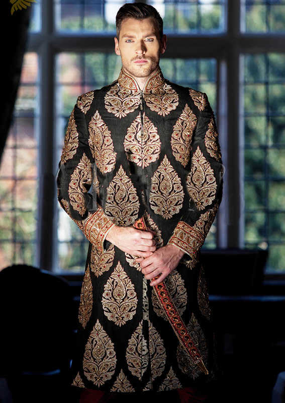 Attractive Jamawar Sherwani Suit for Wedding Attractive Jamawar Sherwani Buckinghamshire UK Suit Wedding Sherwani UK 1 review(s) Add your review Availability: In stock SKU: M1038 Delivery date: 4 - 6 Weeks Size * Size Chart | Custom Measurements Please select Select a Size Custom (Made to Measure) Small (S) Small 2 (S-2) Medium (M) Medium 2 (M-2) Large (L) Large 2 (L-2) Extra Large (XL) [+$30.00] Extra Large 2 (XL-2) [+$30.00] 2XL [+$30.00] 2XL-2 [+$50.00] Bottom * Please select Select a Bottom As shown/described Pants Churidar Pajama Pajama Straight Shalwar Baggy [+$20.00] Shalwar Regular Shalwar Slim Shoes Please select Select a Shoe (Optional) Saleem Shahi Plain (curved toe) [+$30.00] Saleem Shahi Embroidered (curved toe) [+$50.00] Kolhapuri Shoes Plain (without curved toe) [+$30.00] Kolhapuri Shoes Embroidered (without curved toe) [+$50.00] Shawl Please select Select Shawl (Optional) Plain Shawl [+$50.00] Embroidered Shawl [+$100.00] Select your height * Please select Select your height 4 feet 5 in (135 cm) 4 feet 6 in (137 cm) 4 feet 7 in (139 cm) 4 feet 8 in (142 cm) 4 feet 9 in (144 cm) 4 feet 10 in (147 cm) 4 feet 11 in (149 cm) 5 feet (152 cm) 5 feet 1 in (154 cm) 5 feet 2 in (157 cm) 5 feet 3 in (160 cm) 5 feet 4 in (162.5 cm) 5 feet 5 in (165 cm) 5 feet 6 in (168 cm) 5 feet 7 in (170 cm) 5 feet 8 in (173 cm) 5 feet 9 in (175 cm) 5 feet 10 in (178 cm) 5 feet 11 in (180 cm) 6 feet (183 cm) 6 feet 1 in (185 cm) 6 feet 2 in (188 cm) 6 feet 3 in (190.5 cm) 6 feet 4 in (193 cm) 6 feet 5 in (195 cm) 6 feet 6 in (198 cm) 6 feet 7 in (200 cm) 6 feet 8 in (203 cm) 6 feet 9 in (206 cm) 6 feet 10 in (208 cm) 6 feet 11 in (211 cm) 7 feet (213 cm) $699.95 Qty: Add to cart Ship to Select country United States Afghanistan Albania Algeria American Samoa Andorra Angola Anguilla Antarctica Antigua and Barbuda Argentina Armenia Aruba Australia Austria Azerbaijan Bahamas Bahrain Bangladesh Barbados Belarus Belgium Belize Benin Bermuda Bhutan Bolivia Bosnia and Herzegowina Botswana Bouvet Island Brazil British Indian Ocean Territory Brunei Darussalam Bulgaria Burkina Faso Burundi Cambodia Cameroon Canada Cape Verde Cayman Islands Central African Republic Chad Chile China Christmas Island Cocos (Keeling) Islands Colombia Comoros Congo Congo (Democratic Republic of the) Cook Islands Costa Rica Cote D'Ivoire Croatia Cuba Cyprus Czech Republic Denmark Djibouti Dominica Dominican Republic East Timor Ecuador Egypt El Salvador Equatorial Guinea Eritrea Estonia Eswatini Ethiopia Falkland Islands (Malvinas) Faroe Islands Fiji Finland France French Guiana French Polynesia French Southern Territories Gabon Gambia Georgia Germany Ghana Gibraltar Greece Greenland Grenada Guadeloupe Guam Guatemala Guinea Guinea-bissau Guyana Haiti Heard and Mc Donald Islands Honduras Hong Kong Hungary Iceland India Indonesia Iran (Islamic Republic of) Iraq Ireland Italy Jamaica Japan Jordan Kazakhstan Kenya Kiribati Korea Korea, Democratic People's Republic of Kosovo Kuwait Kyrgyzstan Lao People's Democratic Republic Latvia Lebanon Lesotho Liberia Libyan Arab Jamahiriya Liechtenstein Lithuania Luxembourg Macau Macedonia Madagascar Malawi Malaysia Maldives Mali Malta Marshall Islands Martinique Mauritania Mauritius Mayotte Mexico Micronesia Moldova Monaco Mongolia Montenegro Montserrat Morocco Mozambique Myanmar Namibia Nauru Nepal Netherlands New Caledonia New Zealand Nicaragua Niger Nigeria Niue Norfolk Island Northern Mariana Islands Norway Oman Pakistan Palau Palestine Panama Papua New Guinea Paraguay Peru Philippines Pitcairn Poland Portugal Puerto Rico Qatar Reunion Romania Russian Federation Rwanda Saint Kitts and Nevis Saint Lucia Saint Vincent and the Grenadines Samoa San Marino Sao Tome and Principe Saudi Arabia Senegal Serbia Seychelles Sierra Leone Singapore Sint Maarten Slovakia (Slovak Republic) Slovenia Solomon Islands Somalia South Africa South Georgia & South Sandwich Islands South Sudan Spain Sri Lanka St. Helena St. Pierre and Miquelon Sudan Suriname Svalbard and Jan Mayen Islands Sweden Switzerland Syrian Arab Republic Taiwan Tajikistan Tanzania Thailand Togo Tokelau Tonga Trinidad and Tobago Tunisia Turkey Turkmenistan Turks and Caicos Islands Tuvalu Uganda Ukraine United Arab Emirates United Kingdom United States minor outlying islands Uruguay Uzbekistan Vanuatu Vatican City State (Holy See) Venezuela Viet Nam Virgin Islands (British) Virgin Islands (U.S.) Wallis and Futuna Islands Western Sahara Yemen Zambia Zimbabwe * Other * Shipping Method Name Estimated Delivery Price No shipping options Apply Custom wishlist OK Add to wishlist Add to compare list Email a friend Sherwani:Color: BlackFabric: Self JamawarDazzling sherwani features attractive paisley motifs accentuates all-over and delicate embellishments crafted on collar and sleevesHidden front buttons closure Inner:Complemented with maroon kurta and pajama Additional Accessories:Kolhapuri/Saleem Shahi shoes: US$50(Made with sherwani material & embroidery)Tied pre-made Turban: US$150Men's Shawl: US$50 Note: The price of this sherwani includes sherwani and inner suit. Extra charges will apply for the turban which is shown in the picture. Made in Pakistan. Product tags Attractive Jamawar Sherwani Buckinghamshire UK Suit Wedding Sherwani UK - Ahsan's UK 2016 (1)