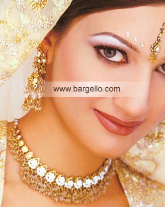 Bridal Choker, nose ring, earrings and 1 ring 925 sterling silver Color: silver, champagne, emerald and golden zircons, pearls, stones, kundan, gemstones and beads 24kt gold plated. Pakistani Bridal Choker Sets with Nose Ring Earring Artificial Choker Jewellery Set