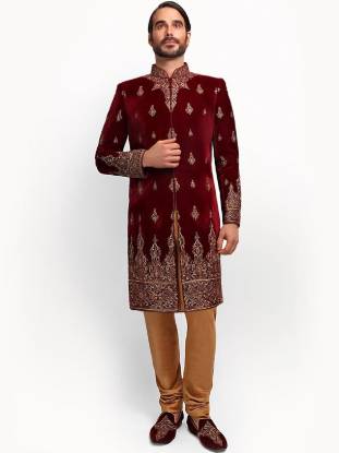 Indian velvet sherwani features rich quality embellishments accent the front, collar and sleeves ,complement with copper kurta and pajama Indian Velvet Sherwani for Groom Los Angeles California USA Sherwani for Groom