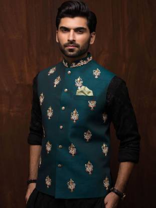 Grooms Waistcoat for Mens features delicate embroidery accent the front and collar