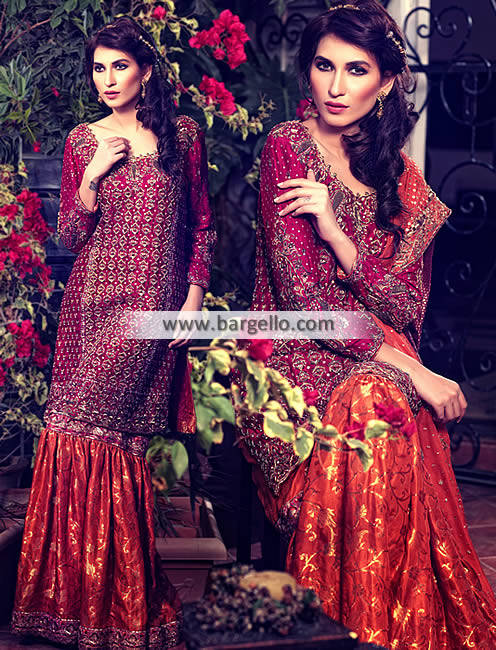 Lavish Bridal Gharara Dress for Wedding and Special Occasion Lavish Bridal Gharara Dresses Richmond Virginia VA US for Wedding and Special Occasion Be the first to review this product Availability: In stock SKU: D5309 Delivery date: 8 - 10 Weeks Size * Size Chart | Custom Measurements Please select Select a Size Extra Small (XS) Small (S) Small 2 (S-2) Medium (M) Medium 2 (M-2) Large (L) [+$30.00] Large 2 (L-2) [+$30.00] Extra Large (XL) [+$30.00] Extra Large 2 (XL-2) [+$30.00] 2XL [+$30.00] 2XL-2 [+$30.00] Custom (Made to Measure) Sleeves * View Sleeve Designs Please select Select Sleeves As shown/described Angel Sleeves Bell Sleeves Bishop Sleeves Butterfly Sleeves [+$15.00] Cap Sleeves Churidar Sleeves Elbow Sleeves Flutter Sleeves Full Sleeves Half Sleeves Laces Sleeves Lantern Sleeves Maggan Sleeves Poet Sleeves Pointed Sleeves Puff Sleeves Raglan Sleeve Roll-up Sleeves Sleeveless Super Mini Tailored Sleeves Three Quarter Trumpet Sleeves Bottom * Please select Select Bottom As shown/described Palazzo Churidar Pajama Slim Pajama Baggy Shalwar Patiala Shalwar [+$30.00] Regular Shalwar Slim Shalwar Slim Trousers Bell Bottom Trousers Cropped Trousers Capri Pants Flappers Trousers Flared Trousers Straight Trousers Select your height * Please select Select your height 4 feet 5 in (135 cm) 4 feet 6 in (137 cm) 4 feet 7 in (139 cm) 4 feet 8 in (142 cm) 4 feet 9 in (144 cm) 4 feet 10 in (147 cm) 4 feet 11 in (149 cm) 5 feet (152 cm) 5 feet 1 in (154 cm) 5 feet 2 in (157 cm) 5 feet 3 in (160 cm) 5 feet 4 in (162.5 cm) 5 feet 5 in (165 cm) 5 feet 6 in (168 cm) 5 feet 7 in (170 cm) 5 feet 8 in (173 cm) 5 feet 9 in (175 cm) 5 feet 10 in (178 cm) 5 feet 11 in (180 cm) 6 feet (183 cm) 6 feet 1 in (185 cm) 6 feet 2 in (188 cm) 6 feet 3 in (190.5 cm) 6 feet 4 in (193 cm) 6 feet 5 in (195 cm) 6 feet 6 in (198 cm) 6 feet 7 in (200 cm) 6 feet 8 in (203 cm) 6 feet 9 in (206 cm) 6 feet 10 in (208 cm) 6 feet 11 in (211 cm) 7 feet (213 cm) $1,299.95 Qty: Add to cart Ship to Select country United States Afghanistan Albania Algeria American Samoa Andorra Angola Anguilla Antarctica Antigua and Barbuda Argentina Armenia Aruba Australia Austria Azerbaijan Bahamas Bahrain Bangladesh Barbados Belarus Belgium Belize Benin Bermuda Bhutan Bolivia Bosnia and Herzegowina Botswana Bouvet Island Brazil British Indian Ocean Territory Brunei Darussalam Bulgaria Burkina Faso Burundi Cambodia Cameroon Canada Cape Verde Cayman Islands Central African Republic Chad Chile China Christmas Island Cocos (Keeling) Islands Colombia Comoros Congo Congo (Democratic Republic of the) Cook Islands Costa Rica Cote D'Ivoire Croatia Cuba Cyprus Czech Republic Denmark Djibouti Dominica Dominican Republic East Timor Ecuador Egypt El Salvador Equatorial Guinea Eritrea Estonia Eswatini Ethiopia Falkland Islands (Malvinas) Faroe Islands Fiji Finland France French Guiana French Polynesia French Southern Territories Gabon Gambia Georgia Germany Ghana Gibraltar Greece Greenland Grenada Guadeloupe Guam Guatemala Guinea Guinea-bissau Guyana Haiti Heard and Mc Donald Islands Honduras Hong Kong Hungary Iceland India Indonesia Iran (Islamic Republic of) Iraq Ireland Italy Jamaica Japan Jordan Kazakhstan Kenya Kiribati Korea Korea, Democratic People's Republic of Kosovo Kuwait Kyrgyzstan Lao People's Democratic Republic Latvia Lebanon Lesotho Liberia Libyan Arab Jamahiriya Liechtenstein Lithuania Luxembourg Macau Macedonia Madagascar Malawi Malaysia Maldives Mali Malta Marshall Islands Martinique Mauritania Mauritius Mayotte Mexico Micronesia Moldova Monaco Mongolia Montenegro Montserrat Morocco Mozambique Myanmar Namibia Nauru Nepal Netherlands New Caledonia New Zealand Nicaragua Niger Nigeria Niue Norfolk Island Northern Mariana Islands Norway Oman Pakistan Palau Palestine Panama Papua New Guinea Paraguay Peru Philippines Pitcairn Poland Portugal Puerto Rico Qatar Reunion Romania Russian Federation Rwanda Saint Kitts and Nevis Saint Lucia Saint Vincent and the Grenadines Samoa San Marino Sao Tome and Principe Saudi Arabia Senegal Serbia Seychelles Sierra Leone Singapore Sint Maarten Slovakia (Slovak Republic) Slovenia Solomon Islands Somalia South Africa South Georgia & South Sandwich Islands South Sudan Spain Sri Lanka St. Helena St. Pierre and Miquelon Sudan Suriname Svalbard and Jan Mayen Islands Sweden Switzerland Syrian Arab Republic Taiwan Tajikistan Tanzania Thailand Togo Tokelau Tonga Trinidad and Tobago Tunisia Turkey Turkmenistan Turks and Caicos Islands Tuvalu Uganda Ukraine United Arab Emirates United Kingdom United States minor outlying islands Uruguay Uzbekistan Vanuatu Vatican City State (Holy See) Venezuela Viet Nam Virgin Islands (British) Virgin Islands (U.S.) Wallis and Futuna Islands Western Sahara Yemen Zambia Zimbabwe * Other * Shipping Method Name Estimated Delivery Price No shipping options Apply Custom wishlist OK Add to wishlist Add to compare list Email a friend Include yourself with the glamour of the season with this bridal dress. Top: Color: Dark Vivid Burgundy Fabric: Crinkle Chiffon Shirt features appealing and glorious embellishments accent the neckline, front panel, side panels, sleeves, and hemline Full length sleeves Round neckline Beaded buttons detail on neckline Concealed zip closure back Lining inside Edges finished Bottom: Color: Cinnabar Fabric: Banarasi Jamawar Two legged gharara features gorgeous embellishments on hem and knee area Drawstring waist Edges finished Dupatta: Color: Cinnabar Fabric: Crinkle Chiffon Dupatta contains embellished work border on edges and stunning sequins spray all-over Small sized ornamental motifs are made all-over Edges finished Embellishment work made with: Dabka, stones, sequins, beads, silk threads and swarovski crystals. 100% pure highest quality imported fabric. Product tags Lavish Bridal Gharara Dresses Richmond Virginia VA US for Wedding and Special Occasion - Umsha Uzma Babar 2015 (1)