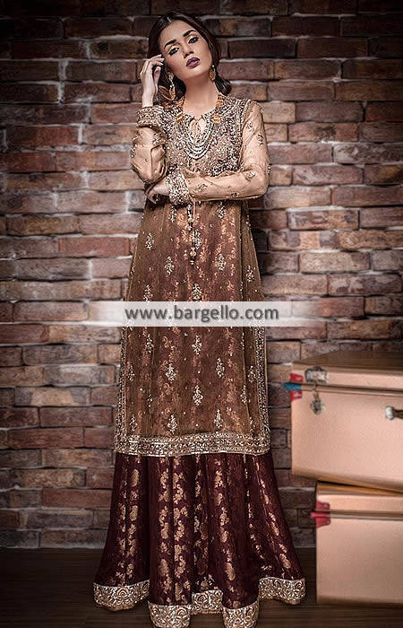 Lavish Wedding Gown for Wedding and Special Occasions Pakistani Wedding Gowns Kew Garden New York NY USA Be the first to review this product Availability: In stock SKU: D5923 Delivery date: 4 - 6 Weeks Size * Size Chart | Custom Measurements Please select Select a Size Extra Small (XS) Small (S) Small 2 (S-2) Medium (M) Medium 2 (M-2) Large (L) [+$30.00] Large 2 (L-2) [+$30.00] Extra Large (XL) [+$30.00] Extra Large 2 (XL-2) [+$30.00] 2XL [+$30.00] 2XL-2 [+$30.00] Custom (Made to Measure) Sleeves * View Sleeve Designs Please select Select Sleeves As shown/described Angel Sleeves Bell Sleeves Bishop Sleeves Butterfly Sleeves [+$15.00] Cap Sleeves Churidar Sleeves Elbow Sleeves Flutter Sleeves Full Sleeves Half Sleeves Laces Sleeves Lantern Sleeves Maggan Sleeves Poet Sleeves Pointed Sleeves Puff Sleeves Raglan Sleeve Roll-up Sleeves Sleeveless Super Mini Tailored Sleeves Three Quarter Trumpet Sleeves Bottom * Please select Select Bottom As shown/described Palazzo Churidar Pajama Slim Pajama Baggy Shalwar Patiala Shalwar [+$30.00] Regular Shalwar Slim Shalwar Slim Trousers Bell Bottom Trousers Cropped Trousers Capri Pants Flappers Trousers Flared Trousers Straight Trousers Select your height * Please select Select your height 4 feet 5 in (135 cm) 4 feet 6 in (137 cm) 4 feet 7 in (139 cm) 4 feet 8 in (142 cm) 4 feet 9 in (144 cm) 4 feet 10 in (147 cm) 4 feet 11 in (149 cm) 5 feet (152 cm) 5 feet 1 in (154 cm) 5 feet 2 in (157 cm) 5 feet 3 in (160 cm) 5 feet 4 in (162.5 cm) 5 feet 5 in (165 cm) 5 feet 6 in (168 cm) 5 feet 7 in (170 cm) 5 feet 8 in (173 cm) 5 feet 9 in (175 cm) 5 feet 10 in (178 cm) 5 feet 11 in (180 cm) 6 feet (183 cm) 6 feet 1 in (185 cm) 6 feet 2 in (188 cm) 6 feet 3 in (190.5 cm) 6 feet 4 in (193 cm) 6 feet 5 in (195 cm) 6 feet 6 in (198 cm) 6 feet 7 in (200 cm) 6 feet 8 in (203 cm) 6 feet 9 in (206 cm) 6 feet 10 in (208 cm) 6 feet 11 in (211 cm) 7 feet (213 cm) $799.95 Qty: Add to cart Ship to Select country United States Afghanistan Albania Algeria American Samoa Andorra Angola Anguilla Antarctica Antigua and Barbuda Argentina Armenia Aruba Australia Austria Azerbaijan Bahamas Bahrain Bangladesh Barbados Belarus Belgium Belize Benin Bermuda Bhutan Bolivia Bosnia and Herzegowina Botswana Bouvet Island Brazil British Indian Ocean Territory Brunei Darussalam Bulgaria Burkina Faso Burundi Cambodia Cameroon Canada Cape Verde Cayman Islands Central African Republic Chad Chile China Christmas Island Cocos (Keeling) Islands Colombia Comoros Congo Congo (Democratic Republic of the) Cook Islands Costa Rica Cote D'Ivoire Croatia Cuba Cyprus Czech Republic Denmark Djibouti Dominica Dominican Republic East Timor Ecuador Egypt El Salvador Equatorial Guinea Eritrea Estonia Eswatini Ethiopia Falkland Islands (Malvinas) Faroe Islands Fiji Finland France French Guiana French Polynesia French Southern Territories Gabon Gambia Georgia Germany Ghana Gibraltar Greece Greenland Grenada Guadeloupe Guam Guatemala Guinea Guinea-bissau Guyana Haiti Heard and Mc Donald Islands Honduras Hong Kong Hungary Iceland India Indonesia Iran (Islamic Republic of) Iraq Ireland Italy Jamaica Japan Jordan Kazakhstan Kenya Kiribati Korea Korea, Democratic People's Republic of Kosovo Kuwait Kyrgyzstan Lao People's Democratic Republic Latvia Lebanon Lesotho Liberia Libyan Arab Jamahiriya Liechtenstein Lithuania Luxembourg Macau Macedonia Madagascar Malawi Malaysia Maldives Mali Malta Marshall Islands Martinique Mauritania Mauritius Mayotte Mexico Micronesia Moldova Monaco Mongolia Montenegro Montserrat Morocco Mozambique Myanmar Namibia Nauru Nepal Netherlands New Caledonia New Zealand Nicaragua Niger Nigeria Niue Norfolk Island Northern Mariana Islands Norway Oman Pakistan Palau Palestine Panama Papua New Guinea Paraguay Peru Philippines Pitcairn Poland Portugal Puerto Rico Qatar Reunion Romania Russian Federation Rwanda Saint Kitts and Nevis Saint Lucia Saint Vincent and the Grenadines Samoa San Marino Sao Tome and Principe Saudi Arabia Senegal Serbia Seychelles Sierra Leone Singapore Sint Maarten Slovakia (Slovak Republic) Slovenia Solomon Islands Somalia South Africa South Georgia & South Sandwich Islands South Sudan Spain Sri Lanka St. Helena St. Pierre and Miquelon Sudan Suriname Svalbard and Jan Mayen Islands Sweden Switzerland Syrian Arab Republic Taiwan Tajikistan Tanzania Thailand Togo Tokelau Tonga Trinidad and Tobago Tunisia Turkey Turkmenistan Turks and Caicos Islands Tuvalu Uganda Ukraine United Arab Emirates United Kingdom United States minor outlying islands Uruguay Uzbekistan Vanuatu Vatican City State (Holy See) Venezuela Viet Nam Virgin Islands (British) Virgin Islands (U.S.) Wallis and Futuna Islands Western Sahara Yemen Zambia Zimbabwe * Other * Shipping Method Name Estimated Delivery Price No shipping options Apply Custom wishlist OK Add to wishlist Add to compare list Email a friend Look effortlessly amazing with this lavish wedding gown... Over-Top: Color: Antique Brass Fabric: Crinkle Chiffon Features charming and lovely embellishments crafted on front bodice, sleeves, side chalks, hemline and small sized ornamental motifs all-over the front Full length sheer sleeves Key-hole neckline Concealed zip closure back Dangling tassels on front Edges finished Gown: Color: Seal Brown Fabric: Banarasi Jamawar Floor length gown features lovely and attractive applique work border accent the hemline Sleeveless V-neckline Lining inside Edges finished Bottom: Color: Seal Brown Fabric: Raw Silk Comes with plain straight trouser having half elasticated waist Dupatta: Color: Antique Brass Fabric: Crinkle Chiffon Dupatta contains stunning sequins spray all-over Edges finished Embellishment work made with: Dabka, stones, sequins, beads, silk threads and swarovski crystals. 100% pure highest quality imported fabric. Product tags Pakistani Wedding Gowns Kew Garden New York NY USA - Umsha by Uzma Babar 2016 (1)