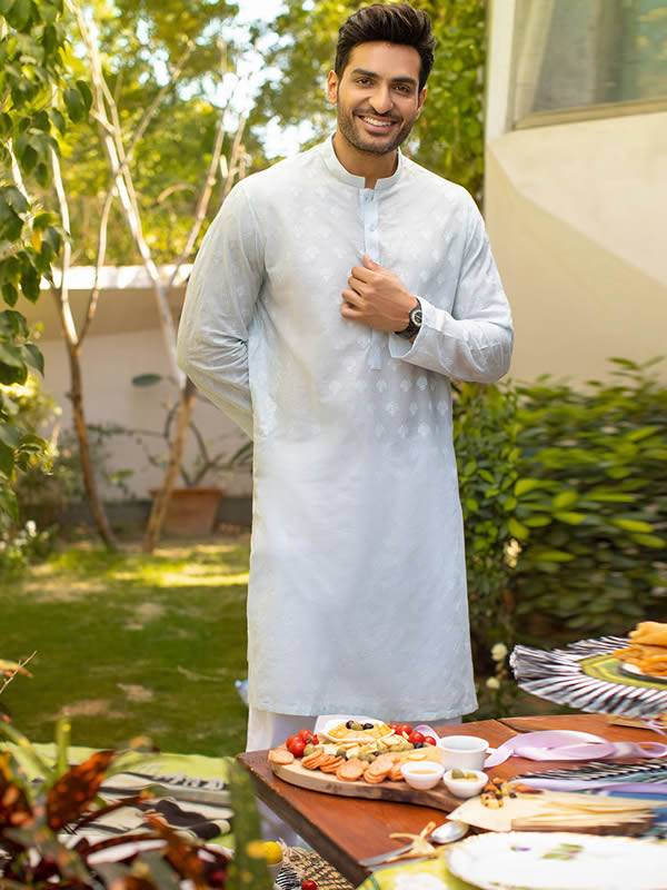 Mens Kurta Pajama for Eid K2321 Designer kurta features embroidery details on front and sleeves Comes with off-white pajama Mens Kurta Pajama for Eid Roslyn New York NY USA Embroidered Kurta for Groom $174.95 Add to cart Add to compare list Custom wishlist OK Add to wishlist