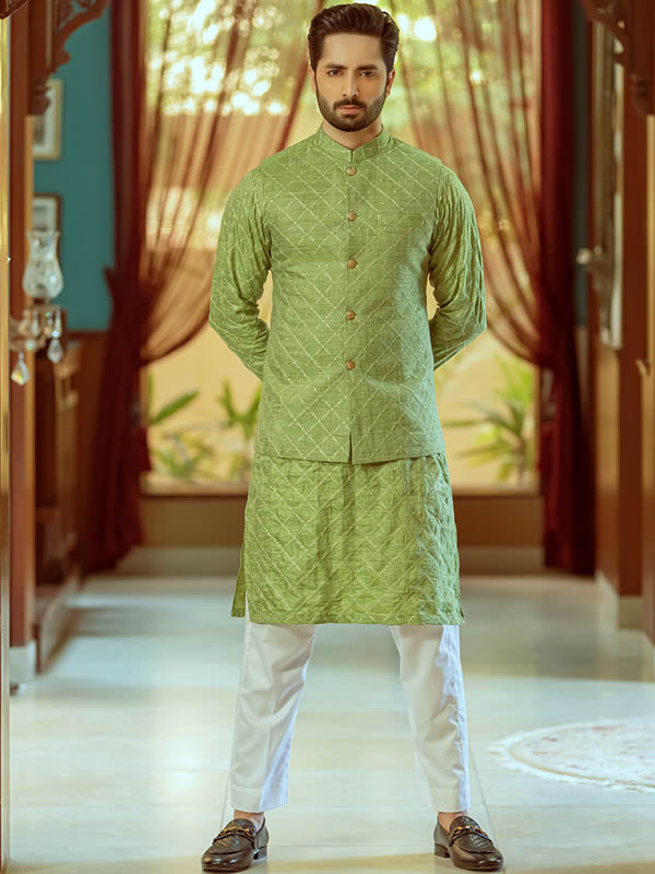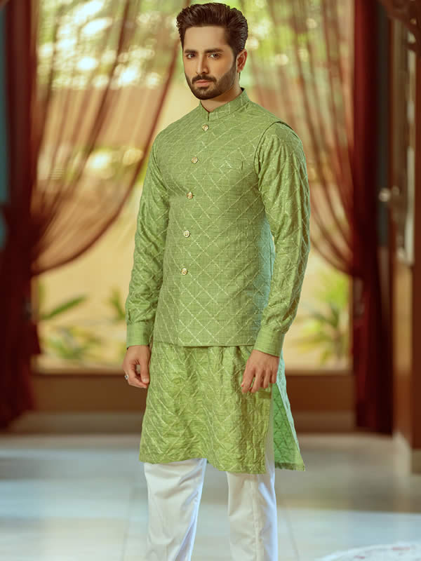 Embroidered Waistcoats for Groom K2414 Designer embroidered waistcoat front Comes with olive drab #7 kurta and shalwar Embroidered Waistcoats for Groom Tyne and Wear London UK Waistcoats for Wedding Events $99.95 Add to cart Add to compare list Custom wishlist OK Add to wishlist