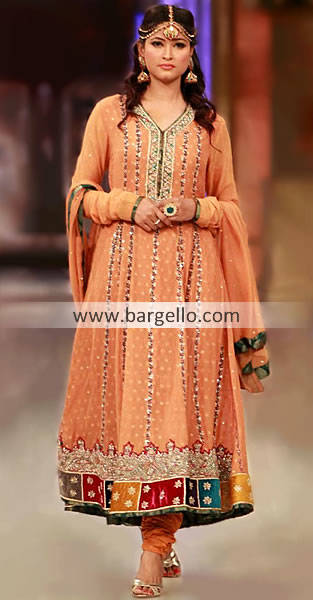 Pink Orange Ornella Designer Asifa Nabeel Anarkali Outfits in Bridal Couture Week Wolverhampton UK Be the first to review this product Availability: In stock SKU: D4204 Delivery date: 4 - 6 Weeks Size * Size Chart | Custom Measurements Please select Select a Size Extra Small (XS) Small (S) Small 2 (S-2) Medium (M) Medium 2 (M-2) Large (L) [+$30.00] Large 2 (L-2) [+$30.00] Extra Large (XL) [+$30.00] Extra Large 2 (XL-2) [+$30.00] 2XL [+$30.00] 2XL-2 [+$30.00] Custom (Made to Measure) Sleeves * View Sleeve Designs Please select Select Sleeves As shown/described Angel Sleeves Bell Sleeves Bishop Sleeves Butterfly Sleeves [+$15.00] Cap Sleeves Churidar Sleeves Elbow Sleeves Flutter Sleeves Full Sleeves Half Sleeves Laces Sleeves Lantern Sleeves Maggan Sleeves Poet Sleeves Pointed Sleeves Puff Sleeves Raglan Sleeve Roll-up Sleeves Sleeveless Super Mini Tailored Sleeves Three Quarter Trumpet Sleeves Bottom * Please select Select Bottom As shown/described Palazzo Churidar Pajama Slim Pajama Baggy Shalwar Patiala Shalwar [+$30.00] Regular Shalwar Slim Shalwar Slim Trousers Bell Bottom Trousers Cropped Trousers Capri Pants Flappers Trousers Flared Trousers Straight Trousers Select your height * Please select Select your height 4 feet 5 in (135 cm) 4 feet 6 in (137 cm) 4 feet 7 in (139 cm) 4 feet 8 in (142 cm) 4 feet 9 in (144 cm) 4 feet 10 in (147 cm) 4 feet 11 in (149 cm) 5 feet (152 cm) 5 feet 1 in (154 cm) 5 feet 2 in (157 cm) 5 feet 3 in (160 cm) 5 feet 4 in (162.5 cm) 5 feet 5 in (165 cm) 5 feet 6 in (168 cm) 5 feet 7 in (170 cm) 5 feet 8 in (173 cm) 5 feet 9 in (175 cm) 5 feet 10 in (178 cm) 5 feet 11 in (180 cm) 6 feet (183 cm) 6 feet 1 in (185 cm) 6 feet 2 in (188 cm) 6 feet 3 in (190.5 cm) 6 feet 4 in (193 cm) 6 feet 5 in (195 cm) 6 feet 6 in (198 cm) 6 feet 7 in (200 cm) 6 feet 8 in (203 cm) 6 feet 9 in (206 cm) 6 feet 10 in (208 cm) 6 feet 11 in (211 cm) 7 feet (213 cm) $649.95 Qty: Add to cart Ship to Select country United States Afghanistan Albania Algeria American Samoa Andorra Angola Anguilla Antarctica Antigua and Barbuda Argentina Armenia Aruba Australia Austria Azerbaijan Bahamas Bahrain Bangladesh Barbados Belarus Belgium Belize Benin Bermuda Bhutan Bolivia Bosnia and Herzegowina Botswana Bouvet Island Brazil British Indian Ocean Territory Brunei Darussalam Bulgaria Burkina Faso Burundi Cambodia Cameroon Canada Cape Verde Cayman Islands Central African Republic Chad Chile China Christmas Island Cocos (Keeling) Islands Colombia Comoros Congo Congo (Democratic Republic of the) Cook Islands Costa Rica Cote D'Ivoire Croatia Cuba Cyprus Czech Republic Denmark Djibouti Dominica Dominican Republic East Timor Ecuador Egypt El Salvador Equatorial Guinea Eritrea Estonia Eswatini Ethiopia Falkland Islands (Malvinas) Faroe Islands Fiji Finland France French Guiana French Polynesia French Southern Territories Gabon Gambia Georgia Germany Ghana Gibraltar Greece Greenland Grenada Guadeloupe Guam Guatemala Guinea Guinea-bissau Guyana Haiti Heard and Mc Donald Islands Honduras Hong Kong Hungary Iceland India Indonesia Iran (Islamic Republic of) Iraq Ireland Italy Jamaica Japan Jordan Kazakhstan Kenya Kiribati Korea Korea, Democratic People's Republic of Kosovo Kuwait Kyrgyzstan Lao People's Democratic Republic Latvia Lebanon Lesotho Liberia Libyan Arab Jamahiriya Liechtenstein Lithuania Luxembourg Macau Macedonia Madagascar Malawi Malaysia Maldives Mali Malta Marshall Islands Martinique Mauritania Mauritius Mayotte Mexico Micronesia Moldova Monaco Mongolia Montenegro Montserrat Morocco Mozambique Myanmar Namibia Nauru Nepal Netherlands New Caledonia New Zealand Nicaragua Niger Nigeria Niue Norfolk Island Northern Mariana Islands Norway Oman Pakistan Palau Palestine Panama Papua New Guinea Paraguay Peru Philippines Pitcairn Poland Portugal Puerto Rico Qatar Reunion Romania Russian Federation Rwanda Saint Kitts and Nevis Saint Lucia Saint Vincent and the Grenadines Samoa San Marino Sao Tome and Principe Saudi Arabia Senegal Serbia Seychelles Sierra Leone Singapore Sint Maarten Slovakia (Slovak Republic) Slovenia Solomon Islands Somalia South Africa South Georgia & South Sandwich Islands South Sudan Spain Sri Lanka St. Helena St. Pierre and Miquelon Sudan Suriname Svalbard and Jan Mayen Islands Sweden Switzerland Syrian Arab Republic Taiwan Tajikistan Tanzania Thailand Togo Tokelau Tonga Trinidad and Tobago Tunisia Turkey Turkmenistan Turks and Caicos Islands Tuvalu Uganda Ukraine United Arab Emirates United Kingdom United States minor outlying islands Uruguay Uzbekistan Vanuatu Vatican City State (Holy See) Venezuela Viet Nam Virgin Islands (British) Virgin Islands (U.S.) Wallis and Futuna Islands Western Sahara Yemen Zambia Zimbabwe * Other * Shipping Method Name Estimated Delivery Price No shipping options Apply Custom wishlist OK Add to wishlist Add to compare list Email a friend Top: Colors: Pink Orange Fabric: Banarasi Crinkle Chiffon Delightfully captivating Anarkali shirt features chic and sweet embellishments on the neckline and hemline Embellished strips on front looks so gorgeous Churidar sleeves V neckline Multicolor velvet appliques accent the hem Lining inside Concealed back zip closure Bottom: Color: Deep Carrot Orange Fabric: Crepe Silk Plain churidar pajama having smocked elastic at the waist Dupatta: Colors: Pink Orange Fabric: Crinkle Chiffon Dupatta having extensive sequins spray Edges finished Embellishment work made with: Sequins, beads, dabka, resham and swarovski crystals. 100% pure highest quality imported fabric. Product tags Designer Asifa Nabeel Anarkali Outfits in Bridal Couture Week Wolverhampton UK (1)