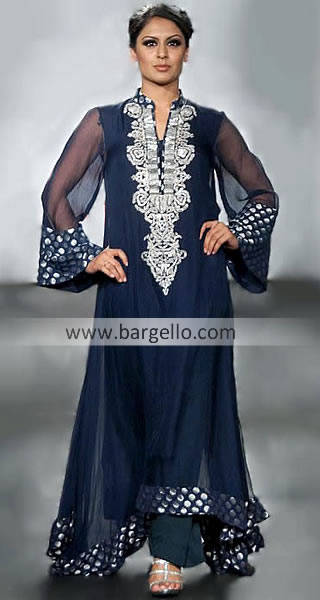 Prussian Blue Bluma Pakistani Designer Dresses Designer Cloths From Pakistan. Pakistani Designer High Fashion Dresses Be the first to review this product Availability: In stock SKU: D2512 Delivery date: 4 - 6 Weeks Size * Size Chart | Custom Measurements Please select Select a Size Extra Small (XS) Small (S) Small 2 (S-2) Medium (M) Medium 2 (M-2) Large (L) [+$30.00] Large 2 (L-2) [+$30.00] Extra Large (XL) [+$30.00] Extra Large 2 (XL-2) [+$30.00] 2XL [+$30.00] 2XL-2 [+$30.00] Custom (Made to Measure) Sleeves * View Sleeve Designs Please select Select Sleeves As shown/described Angel Sleeves Bell Sleeves Bishop Sleeves Butterfly Sleeves [+$15.00] Cap Sleeves Churidar Sleeves Elbow Sleeves Flutter Sleeves Full Sleeves Half Sleeves Laces Sleeves Lantern Sleeves Maggan Sleeves Poet Sleeves Pointed Sleeves Puff Sleeves Raglan Sleeve Roll-up Sleeves Sleeveless Super Mini Tailored Sleeves Three Quarter Trumpet Sleeves Bottom * Please select Select Bottom As shown/described Palazzo Churidar Pajama Slim Pajama Baggy Shalwar Patiala Shalwar [+$30.00] Regular Shalwar Slim Shalwar Slim Trousers Bell Bottom Trousers Cropped Trousers Capri Pants Flappers Trousers Flared Trousers Straight Trousers Select your height * Please select Select your height 4 feet 5 in (135 cm) 4 feet 6 in (137 cm) 4 feet 7 in (139 cm) 4 feet 8 in (142 cm) 4 feet 9 in (144 cm) 4 feet 10 in (147 cm) 4 feet 11 in (149 cm) 5 feet (152 cm) 5 feet 1 in (154 cm) 5 feet 2 in (157 cm) 5 feet 3 in (160 cm) 5 feet 4 in (162.5 cm) 5 feet 5 in (165 cm) 5 feet 6 in (168 cm) 5 feet 7 in (170 cm) 5 feet 8 in (173 cm) 5 feet 9 in (175 cm) 5 feet 10 in (178 cm) 5 feet 11 in (180 cm) 6 feet (183 cm) 6 feet 1 in (185 cm) 6 feet 2 in (188 cm) 6 feet 3 in (190.5 cm) 6 feet 4 in (193 cm) 6 feet 5 in (195 cm) 6 feet 6 in (198 cm) 6 feet 7 in (200 cm) 6 feet 8 in (203 cm) 6 feet 9 in (206 cm) 6 feet 10 in (208 cm) 6 feet 11 in (211 cm) 7 feet (213 cm) $349.95 Qty: Add to cart Ship to Select country United States Afghanistan Albania Algeria American Samoa Andorra Angola Anguilla Antarctica Antigua and Barbuda Argentina Armenia Aruba Australia Austria Azerbaijan Bahamas Bahrain Bangladesh Barbados Belarus Belgium Belize Benin Bermuda Bhutan Bolivia Bosnia and Herzegowina Botswana Bouvet Island Brazil British Indian Ocean Territory Brunei Darussalam Bulgaria Burkina Faso Burundi Cambodia Cameroon Canada Cape Verde Cayman Islands Central African Republic Chad Chile China Christmas Island Cocos (Keeling) Islands Colombia Comoros Congo Congo (Democratic Republic of the) Cook Islands Costa Rica Cote D'Ivoire Croatia Cuba Cyprus Czech Republic Denmark Djibouti Dominica Dominican Republic East Timor Ecuador Egypt El Salvador Equatorial Guinea Eritrea Estonia Eswatini Ethiopia Falkland Islands (Malvinas) Faroe Islands Fiji Finland France French Guiana French Polynesia French Southern Territories Gabon Gambia Georgia Germany Ghana Gibraltar Greece Greenland Grenada Guadeloupe Guam Guatemala Guinea Guinea-bissau Guyana Haiti Heard and Mc Donald Islands Honduras Hong Kong Hungary Iceland India Indonesia Iran (Islamic Republic of) Iraq Ireland Italy Jamaica Japan Jordan Kazakhstan Kenya Kiribati Korea Korea, Democratic People's Republic of Kosovo Kuwait Kyrgyzstan Lao People's Democratic Republic Latvia Lebanon Lesotho Liberia Libyan Arab Jamahiriya Liechtenstein Lithuania Luxembourg Macau Macedonia Madagascar Malawi Malaysia Maldives Mali Malta Marshall Islands Martinique Mauritania Mauritius Mayotte Mexico Micronesia Moldova Monaco Mongolia Montenegro Montserrat Morocco Mozambique Myanmar Namibia Nauru Nepal Netherlands New Caledonia New Zealand Nicaragua Niger Nigeria Niue Norfolk Island Northern Mariana Islands Norway Oman Pakistan Palau Palestine Panama Papua New Guinea Paraguay Peru Philippines Pitcairn Poland Portugal Puerto Rico Qatar Reunion Romania Russian Federation Rwanda Saint Kitts and Nevis Saint Lucia Saint Vincent and the Grenadines Samoa San Marino Sao Tome and Principe Saudi Arabia Senegal Serbia Seychelles Sierra Leone Singapore Sint Maarten Slovakia (Slovak Republic) Slovenia Solomon Islands Somalia South Africa South Georgia & South Sandwich Islands South Sudan Spain Sri Lanka St. Helena St. Pierre and Miquelon Sudan Suriname Svalbard and Jan Mayen Islands Sweden Switzerland Syrian Arab Republic Taiwan Tajikistan Tanzania Thailand Togo Tokelau Tonga Trinidad and Tobago Tunisia Turkey Turkmenistan Turks and Caicos Islands Tuvalu Uganda Ukraine United Arab Emirates United Kingdom United States minor outlying islands Uruguay Uzbekistan Vanuatu Vatican City State (Holy See) Venezuela Viet Nam Virgin Islands (British) Virgin Islands (U.S.) Wallis and Futuna Islands Western Sahara Yemen Zambia Zimbabwe * Other * Shipping Method Name Estimated Delivery Price No shipping options Apply Custom wishlist OK Add to wishlist Add to compare list Email a friend Show your whimsical charm and keep your wardrobe in top fashion with this amazing anarkali outfit. Top: Color: Prussian blue Fabric: Crinkle chiffon Shirt having electrifying embellishments on neckline Sleeve cuffs, hemline Neckline is fashioned with matching banarasi applique Stand collar neckline style Angel sleeves Hemline dips at side seams Bottom: Color: Prussian blue Fabric: Raw silk Plain straight trousers having elasticated at waist Dupatta/Veil: Color: Prussian blue Fabric: Crinkle chiffon Dupatta with extensive sequins embellishments Edges finished Embellishment work: includes Sequins, beads, dabka, swarovski crystals. 100% handmade embellishments. 100% pure highest quality imported fabric. Product tags india lehenga, indian wedding lenghas, indian wedding lehenga, asian bridal dress, asian bridal lenghas, asian bridal lehngas, asian bridal lehnga, bridal dresses pakistan, bridal outfit pakistani, bridal sharara, sharara collection (10)
