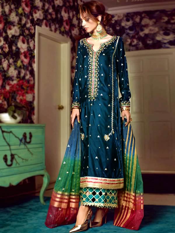 Prussian Blue Wedelia Velvet Party Wear The velvet long shirt adorned worked and embellishments. Trouser with cut work and gota lace borders on bottom and multi color dip-dyed dupatta with sequins spray. Annus Abrar Velvet Party Wear UK USA Canada Australia Pakistani Velvet Dresses 1 review(s) Add your review Availability: In stock SKU: D7783 Delivery date: 4 - 6 Weeks Size * Size Chart | Custom Measurements Please select Select a Size Extra Small (XS) Small (S) Small 2 (S-2) Medium (M) Medium 2 (M-2) Large (L) [+$30.00] Large 2 (L-2) [+$30.00] Extra Large (XL) [+$30.00] Extra Large 2 (XL-2) [+$30.00] 2XL [+$30.00] 2XL-2 [+$30.00] Custom (Made to Measure) Sleeves * View Sleeve Designs Please select Select Sleeves As shown/described Angel Sleeves Bell Sleeves Bishop Sleeves Butterfly Sleeves [+$15.00] Cap Sleeves Churidar Sleeves Elbow Sleeves Flutter Sleeves Full Sleeves Half Sleeves Laces Sleeves Lantern Sleeves Maggan Sleeves Poet Sleeves Pointed Sleeves Puff Sleeves Raglan Sleeve Roll-up Sleeves Sleeveless Super Mini Tailored Sleeves Three Quarter Trumpet Sleeves Bottom * Please select Select Bottom As shown/described Palazzo Churidar Pajama Slim Pajama Baggy Shalwar Patiala Shalwar [+$30.00] Regular Shalwar Slim Shalwar Slim Trousers Bell Bottom Trousers Cropped Trousers Capri Pants Flappers Trousers Flared Trousers Straight Trousers Select your height * Please select Select your height 4 feet 5 in (135 cm) 4 feet 6 in (137 cm) 4 feet 7 in (139 cm) 4 feet 8 in (142 cm) 4 feet 9 in (144 cm) 4 feet 10 in (147 cm) 4 feet 11 in (149 cm) 5 feet (152 cm) 5 feet 1 in (154 cm) 5 feet 2 in (157 cm) 5 feet 3 in (160 cm) 5 feet 4 in (162.5 cm) 5 feet 5 in (165 cm) 5 feet 6 in (168 cm) 5 feet 7 in (170 cm) 5 feet 8 in (173 cm) 5 feet 9 in (175 cm) 5 feet 10 in (178 cm) 5 feet 11 in (180 cm) 6 feet (183 cm) 6 feet 1 in (185 cm) 6 feet 2 in (188 cm) 6 feet 3 in (190.5 cm) 6 feet 4 in (193 cm) 6 feet 5 in (195 cm) 6 feet 6 in (198 cm) 6 feet 7 in (200 cm) 6 feet 8 in (203 cm) 6 feet 9 in (206 cm) 6 feet 10 in (208 cm) 6 feet 11 in (211 cm) 7 feet (213 cm) $499.95 Qty: Add to cart Ship to Select country United States Afghanistan Albania Algeria American Samoa Andorra Angola Anguilla Antarctica Antigua and Barbuda Argentina Armenia Aruba Australia Austria Azerbaijan Bahamas Bahrain Bangladesh Barbados Belarus Belgium Belize Benin Bermuda Bhutan Bolivia Bosnia and Herzegowina Botswana Bouvet Island Brazil British Indian Ocean Territory Brunei Darussalam Bulgaria Burkina Faso Burundi Cambodia Cameroon Canada Cape Verde Cayman Islands Central African Republic Chad Chile China Christmas Island Cocos (Keeling) Islands Colombia Comoros Congo Congo (Democratic Republic of the) Cook Islands Costa Rica Cote D'Ivoire Croatia Cuba Cyprus Czech Republic Denmark Djibouti Dominica Dominican Republic East Timor Ecuador Egypt El Salvador Equatorial Guinea Eritrea Estonia Eswatini Ethiopia Falkland Islands (Malvinas) Faroe Islands Fiji Finland France French Guiana French Polynesia French Southern Territories Gabon Gambia Georgia Germany Ghana Gibraltar Greece Greenland Grenada Guadeloupe Guam Guatemala Guinea Guinea-bissau Guyana Haiti Heard and Mc Donald Islands Honduras Hong Kong Hungary Iceland India Indonesia Iran (Islamic Republic of) Iraq Ireland Italy Jamaica Japan Jordan Kazakhstan Kenya Kiribati Korea Korea, Democratic People's Republic of Kosovo Kuwait Kyrgyzstan Lao People's Democratic Republic Latvia Lebanon Lesotho Liberia Libyan Arab Jamahiriya Liechtenstein Lithuania Luxembourg Macau Macedonia Madagascar Malawi Malaysia Maldives Mali Malta Marshall Islands Martinique Mauritania Mauritius Mayotte Mexico Micronesia Moldova Monaco Mongolia Montenegro Montserrat Morocco Mozambique Myanmar Namibia Nauru Nepal Netherlands New Caledonia New Zealand Nicaragua Niger Nigeria Niue Norfolk Island Northern Mariana Islands Norway Oman Pakistan Palau Palestine Panama Papua New Guinea Paraguay Peru Philippines Pitcairn Poland Portugal Puerto Rico Qatar Reunion Romania Russian Federation Rwanda Saint Kitts and Nevis Saint Lucia Saint Vincent and the Grenadines Samoa San Marino Sao Tome and Principe Saudi Arabia Senegal Serbia Seychelles Sierra Leone Singapore Sint Maarten Slovakia (Slovak Republic) Slovenia Solomon Islands Somalia South Africa South Georgia & South Sandwich Islands South Sudan Spain Sri Lanka St. Helena St. Pierre and Miquelon Sudan Suriname Svalbard and Jan Mayen Islands Sweden Switzerland Syrian Arab Republic Taiwan Tajikistan Tanzania Thailand Togo Tokelau Tonga Trinidad and Tobago Tunisia Turkey Turkmenistan Turks and Caicos Islands Tuvalu Uganda Ukraine United Arab Emirates United Kingdom United States minor outlying islands Uruguay Uzbekistan Vanuatu Vatican City State (Holy See) Venezuela Viet Nam Virgin Islands (British) Virgin Islands (U.S.) Wallis and Futuna Islands Western Sahara Yemen Zambia Zimbabwe * Other * Shipping Method Name Estimated Delivery Price No shipping options Apply Custom wishlist OK Add to wishlist Add to compare list Email a friend Top:Color: Dark Prussian BlueFabric: VelvetLong shirt adorned with exquisite embellishments on neckline, front and sleevesTiny motifs and sequins spray all over Hem is finieshed with jamawar and lace trimmingLining insideEdges finishedBottom:Color: Dark Prussian BlueFabric: Raw SilkTrouser features delicate cut work border incorporated with gota and lace trimmingHalf elasticated waistbandDupatta:Color: Dip-dyed (Dark Prussian Blue, Teal and Amaranth)Fabric: Zari OrganzaDupatta contains stunning sequins spray all overHemming edgesCustomized details can be added at check outEmbellishment work made with:Dabka, stones, sequins, beads, silk threads and swarovski crystals. 100% pure highest quality imported fabric. Product tags annus abrar (5) , pakistani velvet dresses (4) , annus abrar velvet dresses (3) , velvet party wear (1) , velvet party wear uk (1) , velvet party wear usa (1) , velvet party wear canada (1) , velvet party wear australia (1)