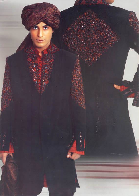Style M267 Sherwani for Wedding Men's Sherwani Wedding Sherwani Groom's Sherwani 1 review(s) Add your review Availability: In stock SKU: M267 Delivery date: 4 - 6 Weeks Size * Size Chart | Custom Measurements Please select Select a Size Custom (Made to Measure) Small (S) Small 2 (S-2) Medium (M) Medium 2 (M-2) Large (L) Large 2 (L-2) Extra Large (XL) [+$30.00] Extra Large 2 (XL-2) [+$30.00] 2XL [+$30.00] 2XL-2 [+$50.00] Bottom * Please select Select a Bottom As shown/described Pants Churidar Pajama Pajama Straight Shalwar Baggy [+$20.00] Shalwar Regular Shalwar Slim Shoes Please select Select a Shoe (Optional) Saleem Shahi Plain (curved toe) [+$30.00] Saleem Shahi Embroidered (curved toe) [+$50.00] Kolhapuri Shoes Plain (without curved toe) [+$30.00] Kolhapuri Shoes Embroidered (without curved toe) [+$50.00] Shawl Please select Select Shawl (Optional) Plain Shawl [+$50.00] Embroidered Shawl [+$100.00] Select your height * Please select Select your height 4 feet 5 in (135 cm) 4 feet 6 in (137 cm) 4 feet 7 in (139 cm) 4 feet 8 in (142 cm) 4 feet 9 in (144 cm) 4 feet 10 in (147 cm) 4 feet 11 in (149 cm) 5 feet (152 cm) 5 feet 1 in (154 cm) 5 feet 2 in (157 cm) 5 feet 3 in (160 cm) 5 feet 4 in (162.5 cm) 5 feet 5 in (165 cm) 5 feet 6 in (168 cm) 5 feet 7 in (170 cm) 5 feet 8 in (173 cm) 5 feet 9 in (175 cm) 5 feet 10 in (178 cm) 5 feet 11 in (180 cm) 6 feet (183 cm) 6 feet 1 in (185 cm) 6 feet 2 in (188 cm) 6 feet 3 in (190.5 cm) 6 feet 4 in (193 cm) 6 feet 5 in (195 cm) 6 feet 6 in (198 cm) 6 feet 7 in (200 cm) 6 feet 8 in (203 cm) 6 feet 9 in (206 cm) 6 feet 10 in (208 cm) 6 feet 11 in (211 cm) 7 feet (213 cm) $449.95 Qty: Add to cart Ship to Select country United States Afghanistan Albania Algeria American Samoa Andorra Angola Anguilla Antarctica Antigua and Barbuda Argentina Armenia Aruba Australia Austria Azerbaijan Bahamas Bahrain Bangladesh Barbados Belarus Belgium Belize Benin Bermuda Bhutan Bolivia Bosnia and Herzegowina Botswana Bouvet Island Brazil British Indian Ocean Territory Brunei Darussalam Bulgaria Burkina Faso Burundi Cambodia Cameroon Canada Cape Verde Cayman Islands Central African Republic Chad Chile China Christmas Island Cocos (Keeling) Islands Colombia Comoros Congo Congo (Democratic Republic of the) Cook Islands Costa Rica Cote D'Ivoire Croatia Cuba Cyprus Czech Republic Denmark Djibouti Dominica Dominican Republic East Timor Ecuador Egypt El Salvador Equatorial Guinea Eritrea Estonia Eswatini Ethiopia Falkland Islands (Malvinas) Faroe Islands Fiji Finland France French Guiana French Polynesia French Southern Territories Gabon Gambia Georgia Germany Ghana Gibraltar Greece Greenland Grenada Guadeloupe Guam Guatemala Guinea Guinea-bissau Guyana Haiti Heard and Mc Donald Islands Honduras Hong Kong Hungary Iceland India Indonesia Iran (Islamic Republic of) Iraq Ireland Italy Jamaica Japan Jordan Kazakhstan Kenya Kiribati Korea Korea, Democratic People's Republic of Kosovo Kuwait Kyrgyzstan Lao People's Democratic Republic Latvia Lebanon Lesotho Liberia Libyan Arab Jamahiriya Liechtenstein Lithuania Luxembourg Macau Macedonia Madagascar Malawi Malaysia Maldives Mali Malta Marshall Islands Martinique Mauritania Mauritius Mayotte Mexico Micronesia Moldova Monaco Mongolia Montenegro Montserrat Morocco Mozambique Myanmar Namibia Nauru Nepal Netherlands New Caledonia New Zealand Nicaragua Niger Nigeria Niue Norfolk Island Northern Mariana Islands Norway Oman Pakistan Palau Palestine Panama Papua New Guinea Paraguay Peru Philippines Pitcairn Poland Portugal Puerto Rico Qatar Reunion Romania Russian Federation Rwanda Saint Kitts and Nevis Saint Lucia Saint Vincent and the Grenadines Samoa San Marino Sao Tome and Principe Saudi Arabia Senegal Serbia Seychelles Sierra Leone Singapore Sint Maarten Slovakia (Slovak Republic) Slovenia Solomon Islands Somalia South Africa South Georgia & South Sandwich Islands South Sudan Spain Sri Lanka St. Helena St. Pierre and Miquelon Sudan Suriname Svalbard and Jan Mayen Islands Sweden Switzerland Syrian Arab Republic Taiwan Tajikistan Tanzania Thailand Togo Tokelau Tonga Trinidad and Tobago Tunisia Turkey Turkmenistan Turks and Caicos Islands Tuvalu Uganda Ukraine United Arab Emirates United Kingdom United States minor outlying islands Uruguay Uzbekistan Vanuatu Vatican City State (Holy See) Venezuela Viet Nam Virgin Islands (British) Virgin Islands (U.S.) Wallis and Futuna Islands Western Sahara Yemen Zambia Zimbabwe * Other * Shipping Method Name Estimated Delivery Price No shipping options Apply Custom wishlist OK Add to wishlist Add to compare list Email a friend Black Sherwani having rich embellishments collar, cuffs and sleeves. Comes with inners such as Kurta, Shalwar/Churidar pyjama. Additional Accessories: Kolhapuri/Saleem Shahi shoes: US$50 (Made with sherwani material & embroidery) Tied pre-made Turban: US$149.95 Men's Plain Shawl: US$50 Note: The price of this sherwani includes sherwani and inner suit. Extra charges will apply for the turban which is shown in the picture. Made in Pakistan.